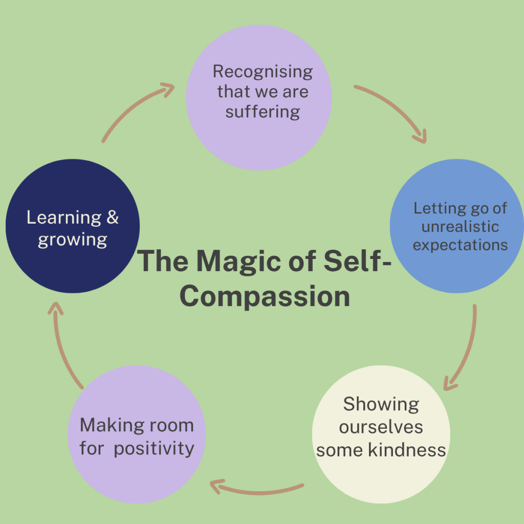 Self-kindness – responding to yourself with understanding rather than criticism.